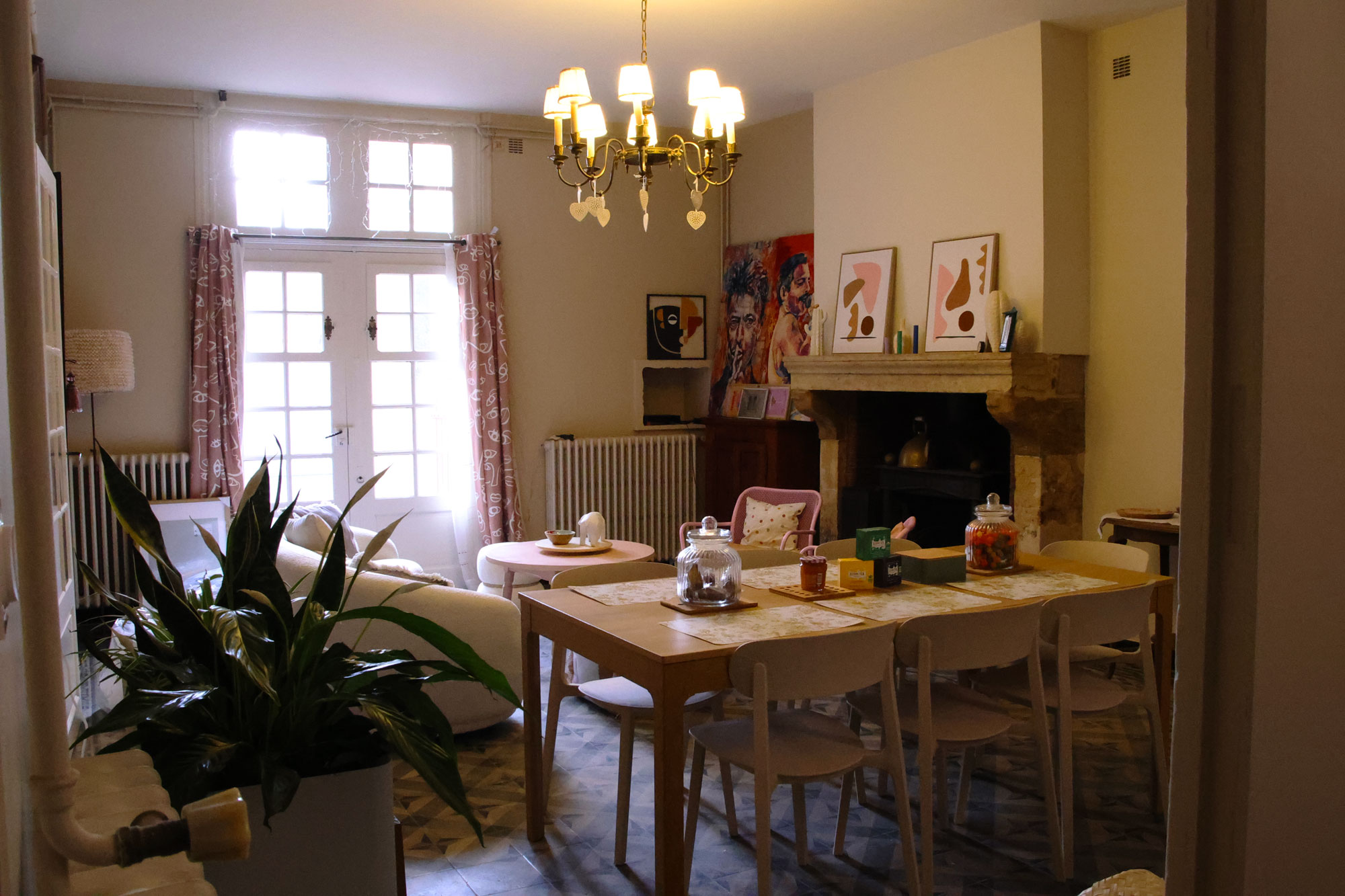 Ambiance reposante et chaleureuse mêlant l’architecture du XVIeme siècle, le charme des années 30 et la modernité actuelle. 3 chambres pour 3 atmosphères : Empire chic, Années 30 et Little Jungle enfant.